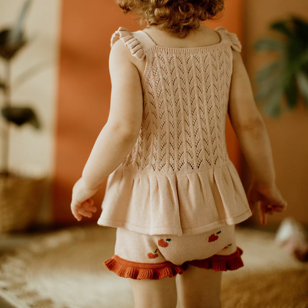 Bata menina bebê e infantil em tricot modal rendado. Confeccionada em Viscose e Poliamida, tem o toque geladinho e uma ótima elasticidade. Ou seja, é perfeita para o clima quente. Malha delicada e com peito todo rendado, fechamento em botões com detalhe babado também nas alças e barra.